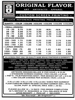( Screen Print - Quick Reference Print Estimates )
